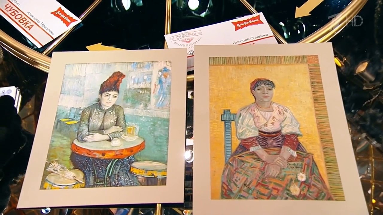 Перед ответом ведущий интересуется у Шутовой: попадались ли ей вопросы про Ван Гога? Та не помнит.