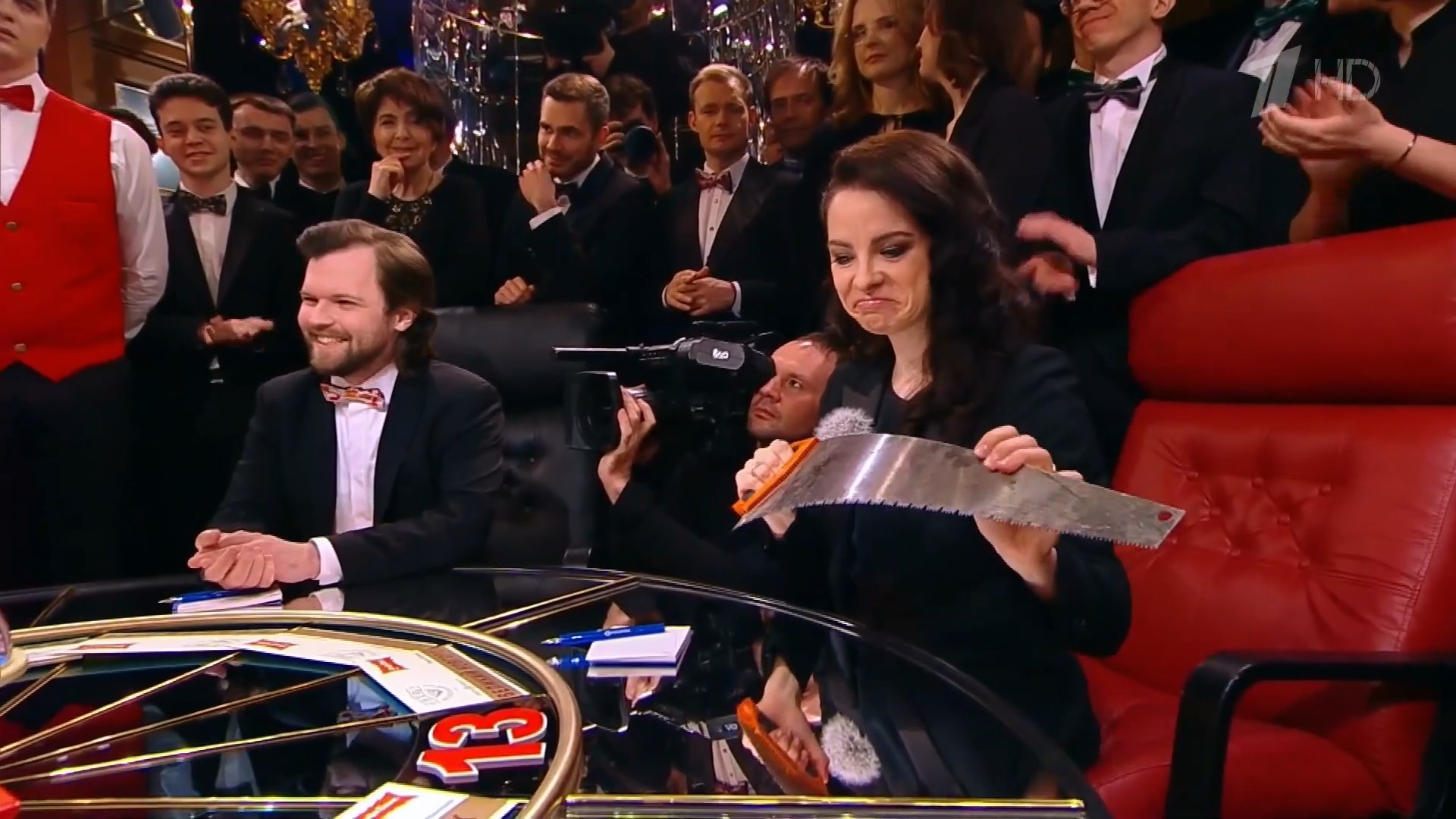 Ведущий в разговоре с Шутовой мимоходом сообщает, что пилу из прошлого вопроса может ей подарить.